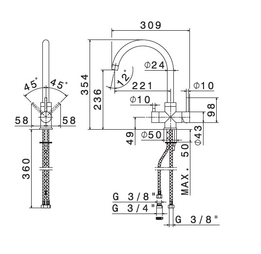 Wysokość wylewki: 23,6 cm