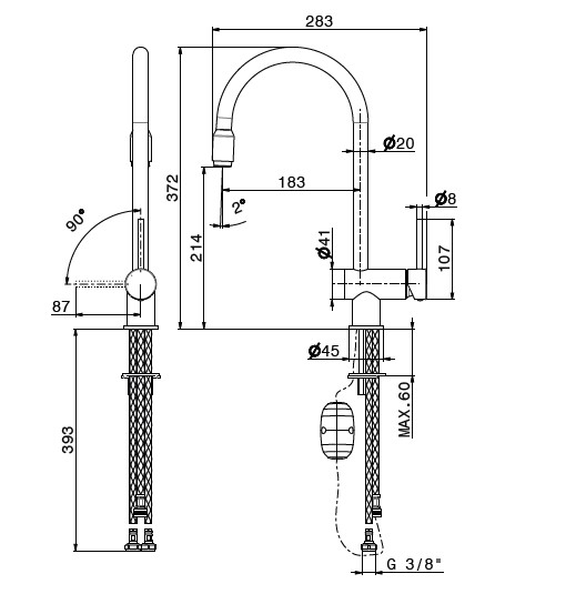 Wysokość wylewki: 21,4 cm