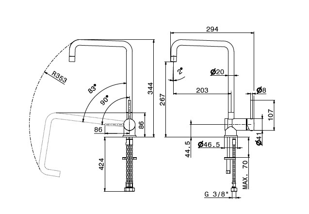 Newform XT Bateria zlewozmywakowa jednouchwytowa z obrotową i składaną wylewką chrom 4370.21.018