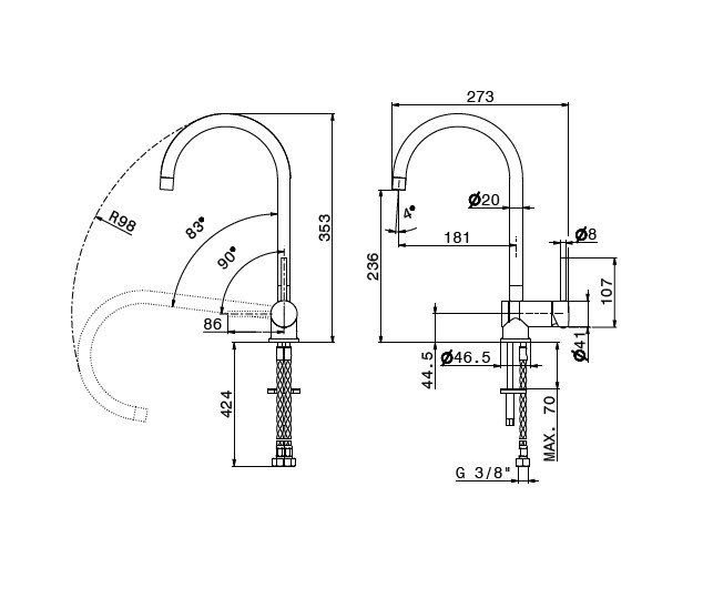 Newform XT Bateria zlewozmywakowa jednouchwytowa z obrotową i składaną wylewką chrom 4371.21.018