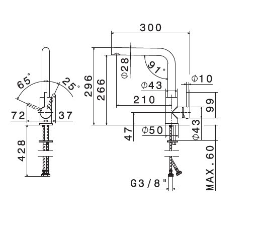 Wysokość wylewki: 26,6 cm