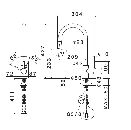 Newform Real Steel Bateria zlewozmywakowa jednouchwytowa 2-strumienna z obrotową i wyciąganą wylewką stal nierdzewna 63435X.50.050
