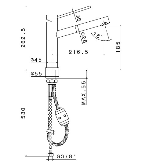 Wysokość wylewki: 18,5 cm