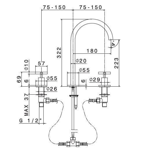 Newform Blink Bateria umywalkowa 3-otworowa z wysoką wylewką chrom 70802.21.018