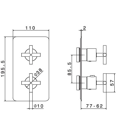 Z jednym uchwytem do regulacji temperatury i jednym uchwytem do zasilania i przepływu wody