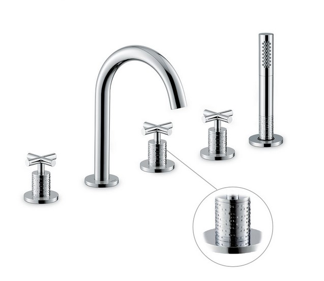 Newform Blink luxury Bateria wannowa 5-otworowa na brzeg wanny z teksturą chrom 70982C.21.018