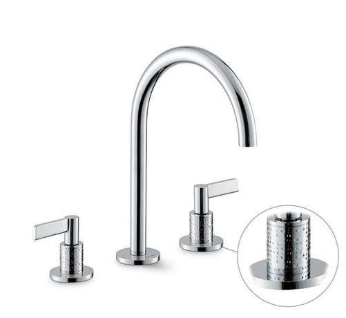 Newform Blink Chic luxury Bateria umywalkowa 3-otworowa z średnią wylewką z teksturą chrom 71101.21.018