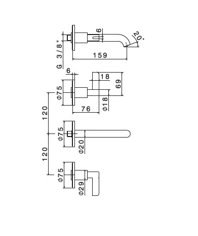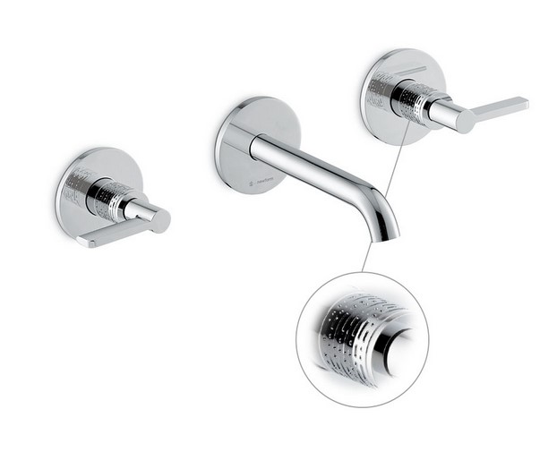 Newform Blink Chic luxury Bateria umywalkowa ścienna 3-otworowa z teksturą część zewnętrzna chrom 71120E.21.018