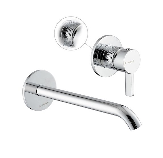 Newform Blink Chic luxury Bateria umywalkowa ścienna jednouchwytowa z długą wylewką z teksturą część zewnętrzna chrom 71130E.21.018
