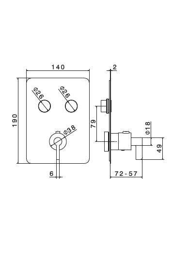 Newform Blink Chic Bateria prysznicowa termostatyczna podtynkowa z dwoma wyjściami część zewnętrzna chrom 70417E.21.018