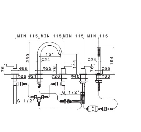 Wylewka, przełącznik, zestaw prysznicowy, bateria