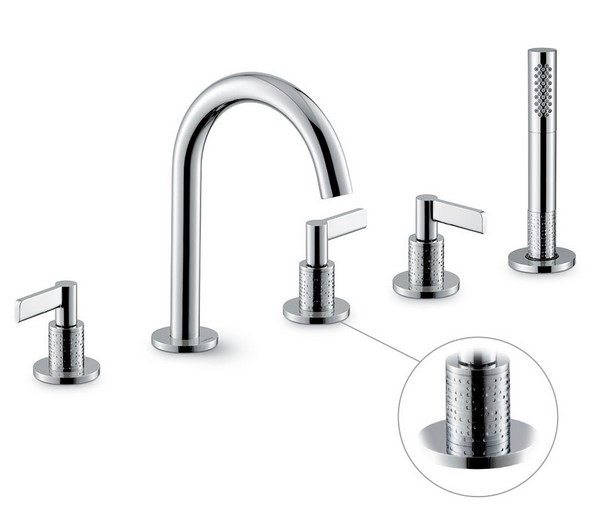 Newform Blink Chic luxury Bateria wannowa 5-otworowa na brzeg wanny z teksturą chrom 71182C.21.018