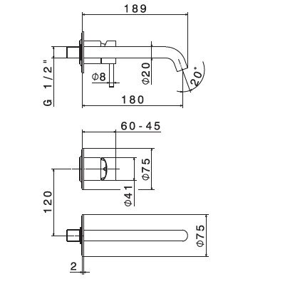 Newform X-Steel 316 Bateria umywalkowa ścienna jednouchwytowa część zewnętrzna stal nierdzewna 69628EX.50.050