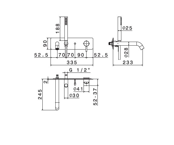 Przełącznik, wylewka ścienna i zestaw prysznicowy, bateria wannowa
