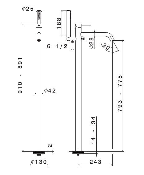 Newform X-Steel 316 Bateria wannowa podtynkowa podłogowa z zestawem prysznicowym część zewnętrzna stal nierdzewna 69684EX.50.050