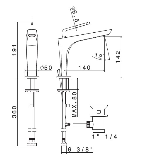 Newform O'Rama Bateria umywalkowa jednouchwytowa z korkiem chrom 68410.21.018