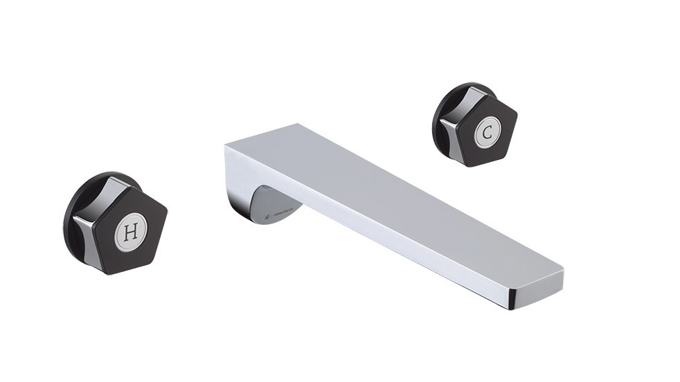 Newform Park Limited Edition Bateria umywalkowa 3-otworowa podtynkowa z długą wylewką część zewnętrzna chrom/czarny mat 69730E.05.093