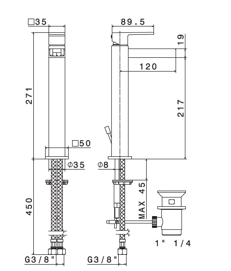 Newform Ergo Open Bateria umywalkowa jednouchwytowa z korkiem wysoka chrom 66513.21.018