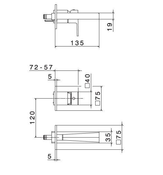 Newform Ergo Open Bateria umywalkowa ścienna jednouchwytowa część zewnętrzna chrom 66530E.21.018