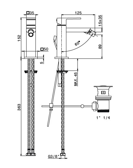 Newform Ergo-Q Bateria bidetowa jednouchwytowa z korkiem chrom 66425.21.018