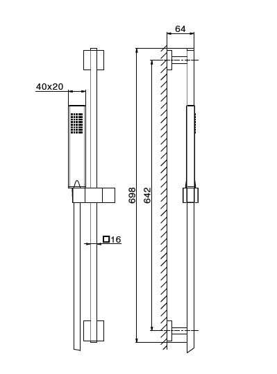 Newform Ergo-Q Drążek prysznicowy ścienny ze słuchawką i wężem chrom 833.21.018