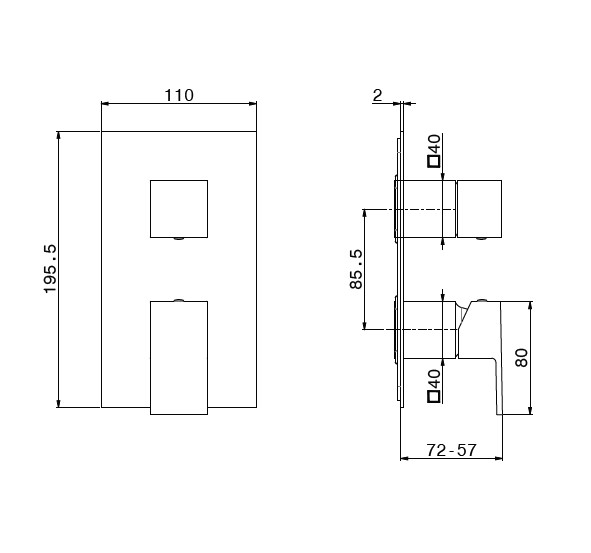 Newform Ergo-Q Bateria prysznicowa jednouchwytowa podtynkowa z przełącznikiem na dwa wyjścia część zewnętrzna chrom 67694E.21.018