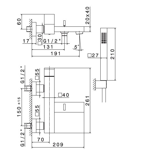 Newform Ergo-Q Bateria wannowa ścienna z zestawem prysznicowym PVC chrom 66440C.21.018