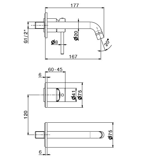 Newform XT Bateria umywalkowa ścienna jednouchwytowa część zewnętrzna chrom 4228E.21.018