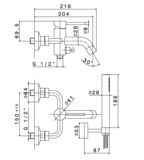 Newform XT Bateria wannowa ścienna z zestawem prysznicowym PVC chrom 4240C.21.018