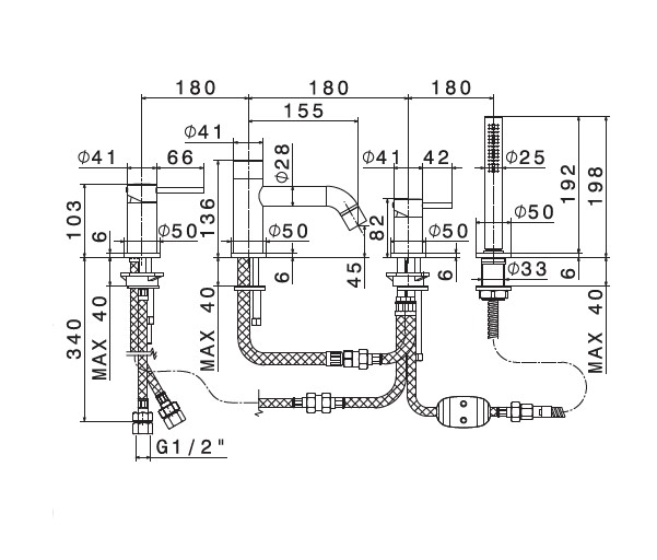 Przełącznik, zestaw prysznicowy, bateria, wylewka