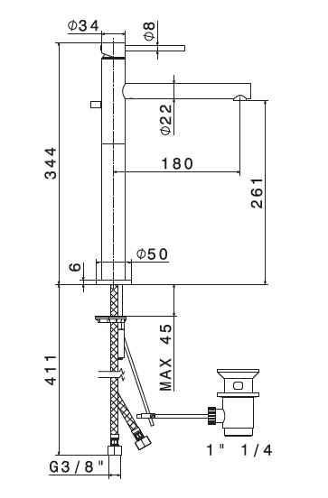 Wysokość wylewki: 26,1 cm