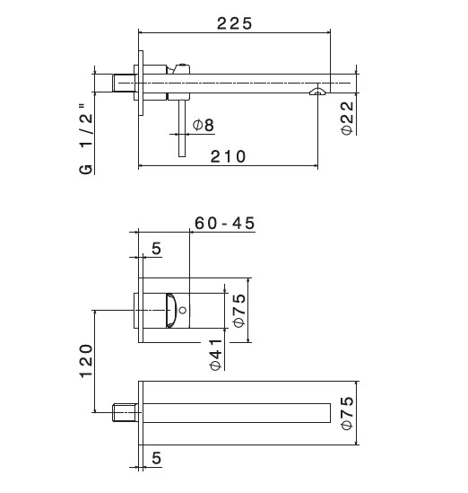 Newform Mini-X Bateria umywalkowa ścienna jednouchwytowa z długą wylewką część zewnętrzna chrom 61330E.21.018
