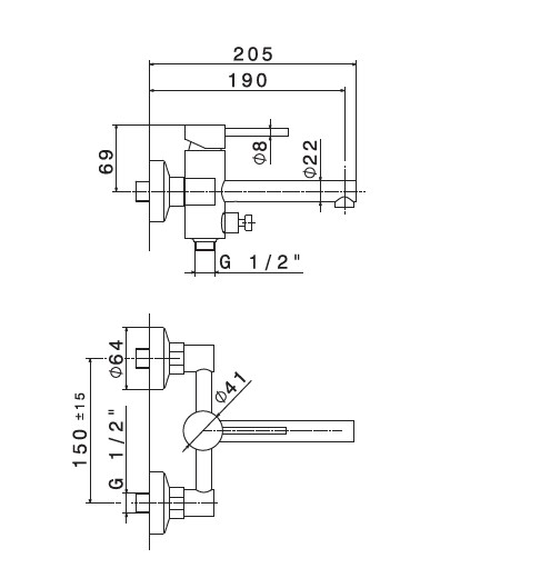 Newform Mini-X Bateria wannowa jednouchwytowa ścienna z automatycznym przełącznikiem wanna/prysznic chrom 61340.21.018
