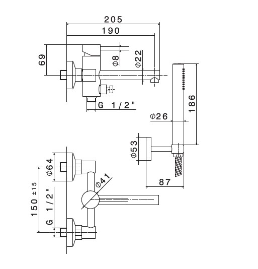 Newform Mini-X Bateria wannowa ścienna z zestawem prysznicowym PVC chrom 61340C.21.018