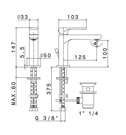 Newform Linfa II Bateria umywalkowa jednouchwytowa z korkiem chrom 69410.21.018