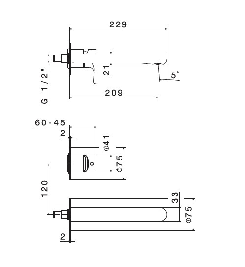 Newform Linfa II Bateria umywalkowa ścienna jednouchwytowa z długą wylewką część zewnętrzna chrom 69430E.21.018
