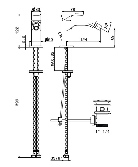 Newform Linfa II Bateria bidetowa jednouchwytowa z korkiem chrom 69425.21.018