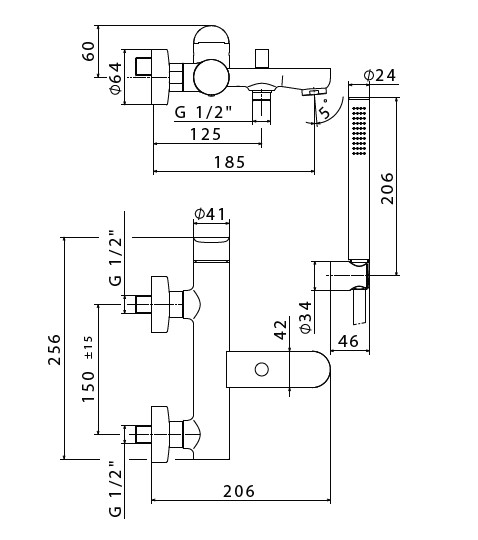 Newform Linfa II Bateria wannowa ścienna z zestawem prysznicowym PVC chrom 69440C.21.018