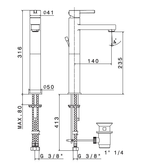 Wysokość wylewki: 23,5 cm