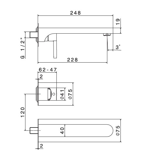 Newform Ergo Bateria umywalkowa ścienna jednouchwytowa z długą wylewką część zewnętrzna chrom 65830E.21.018