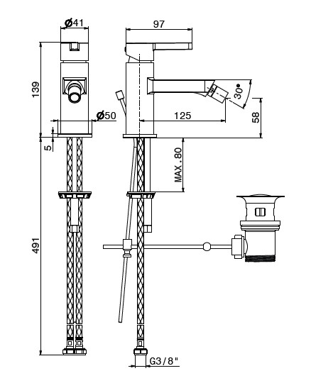 Newform Ergo Bateria bidetowa jednouchwytowa z korkiem chrom 65825.21.018