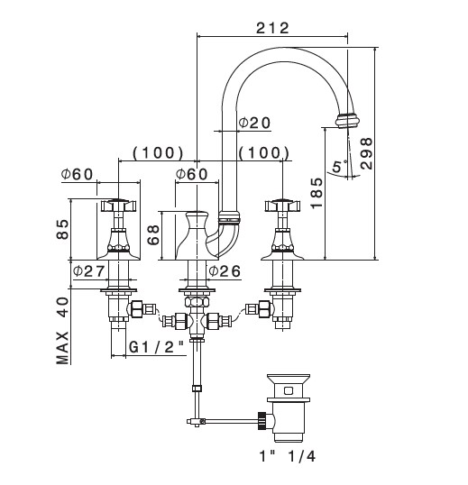 Newform Daytime Bateria umywalkowa 3-otworowa z korkiem z wysoką wylewką chrom 69000.21.018