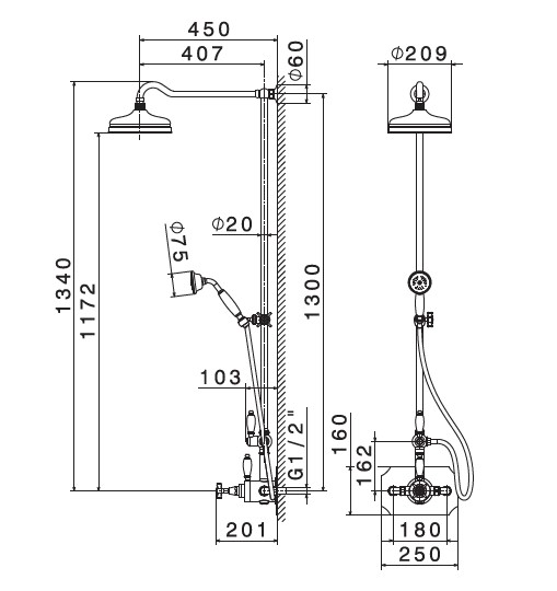 Długość ramienia: 45 cm