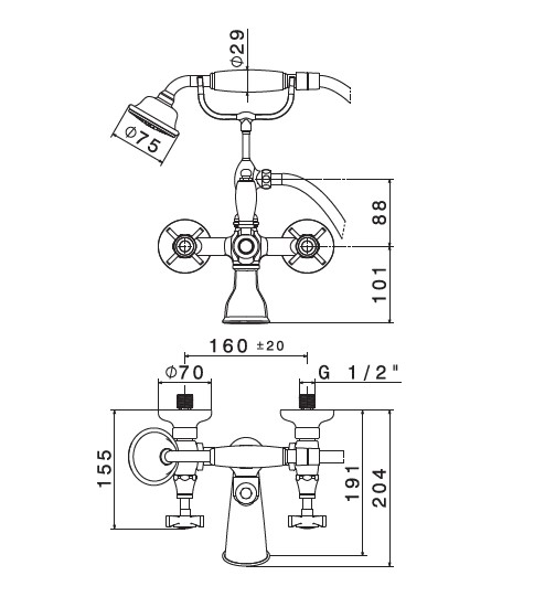 Newform Daytime Bateria wannowa ścienna z automatycznym przełącznikiem wanna/prysznic i zestawem prysznicowym chrom 69040C.21.018