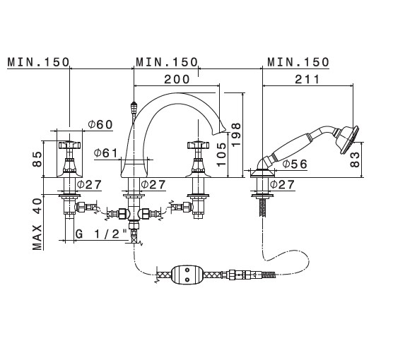Newform Daytime Bateria wannowa 4-otworowa na brzeg wanny chrom 69082C.21.018