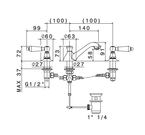 Newform Daytime Style Bateria umywalkowa 3-otworowa z korkiem z niską wylewką chrom 69105.21.018