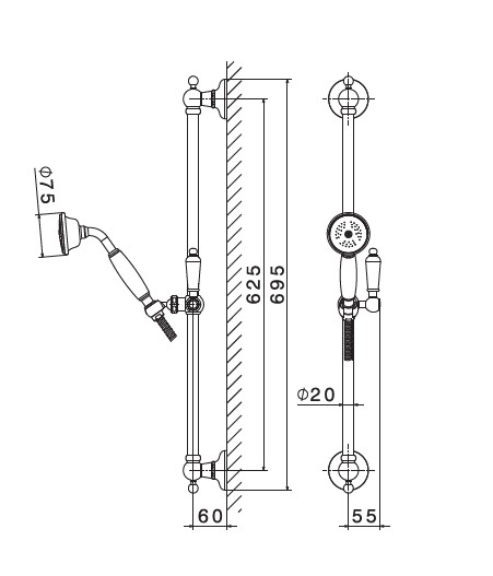 Newform Daytime Style Drążek prysznicowy ścienny ze słuchawką i wężem chrom 69156.21.018
