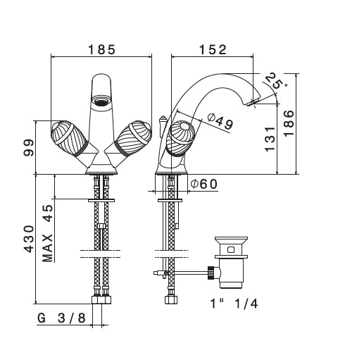 Newform Deluxe Bateria umywalkowa jednootworowa z korkiem chrom 68025.21.018