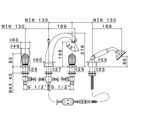 Newform Deluxe Bateria wannowa 4-otworowa na brzeg wanny chrom 68082C.21.018
