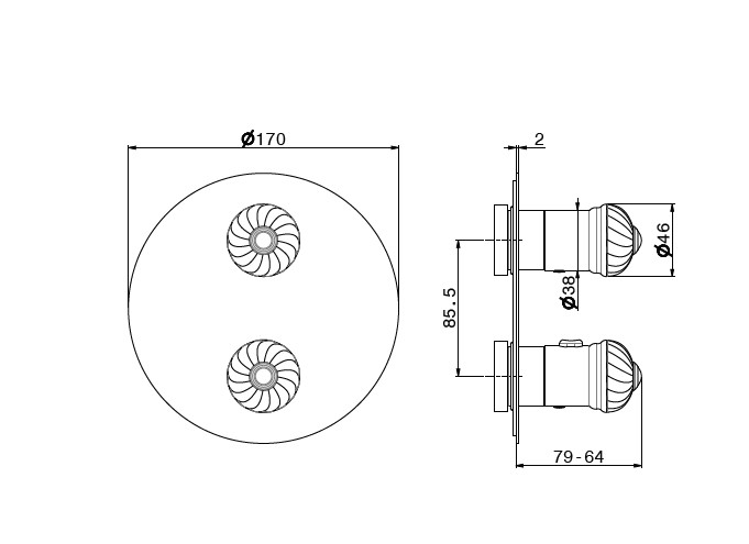 Newform Deluxe Bateria prysznicowa termostatyczna podtynkowa część zewnętrzna chrom 69849E.21.018